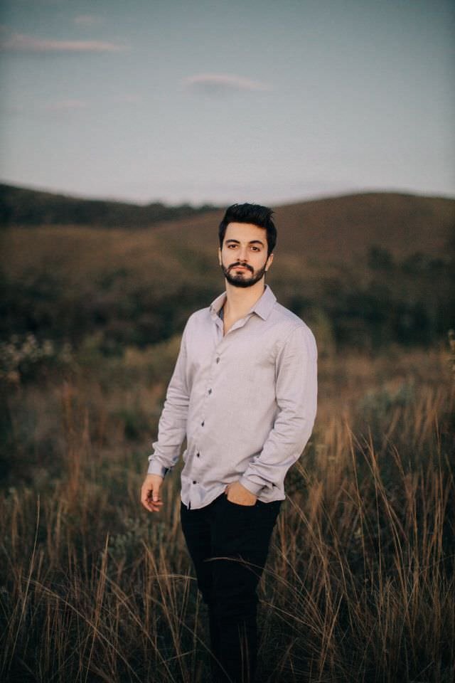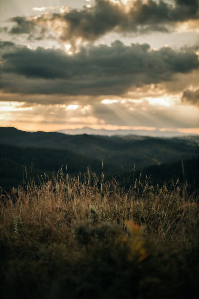 Então em uma das curvas, avistamos uma montanha com o sol batendo e os matinhos todos dourados. Não pensamos duas vezes: ” Para o carro agora!”
