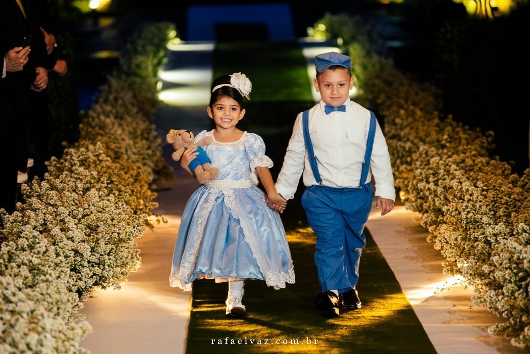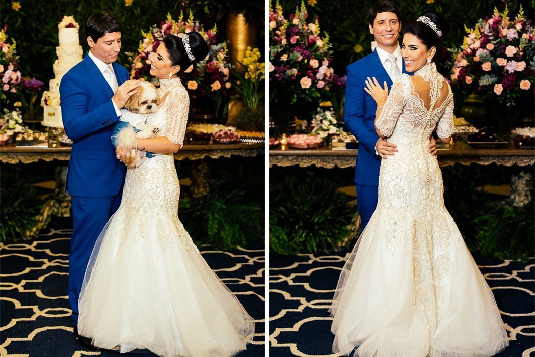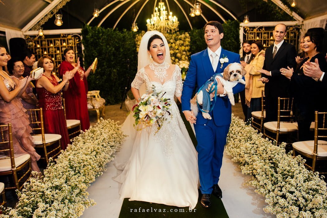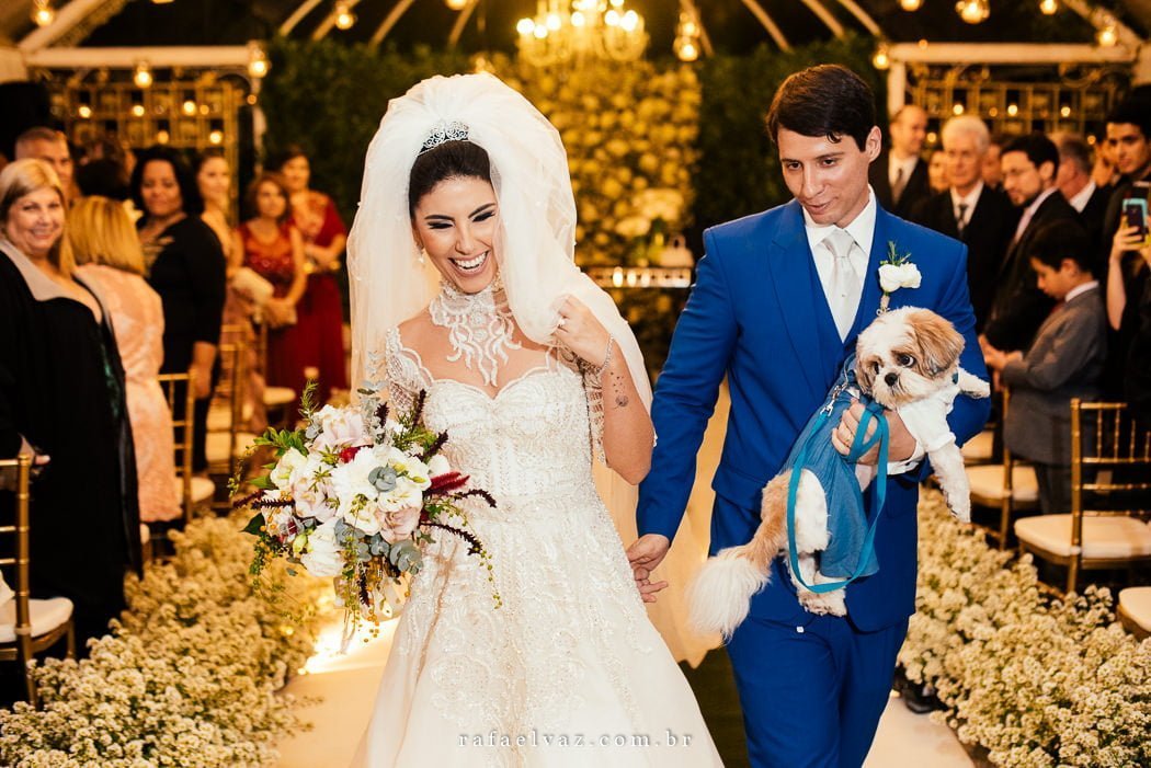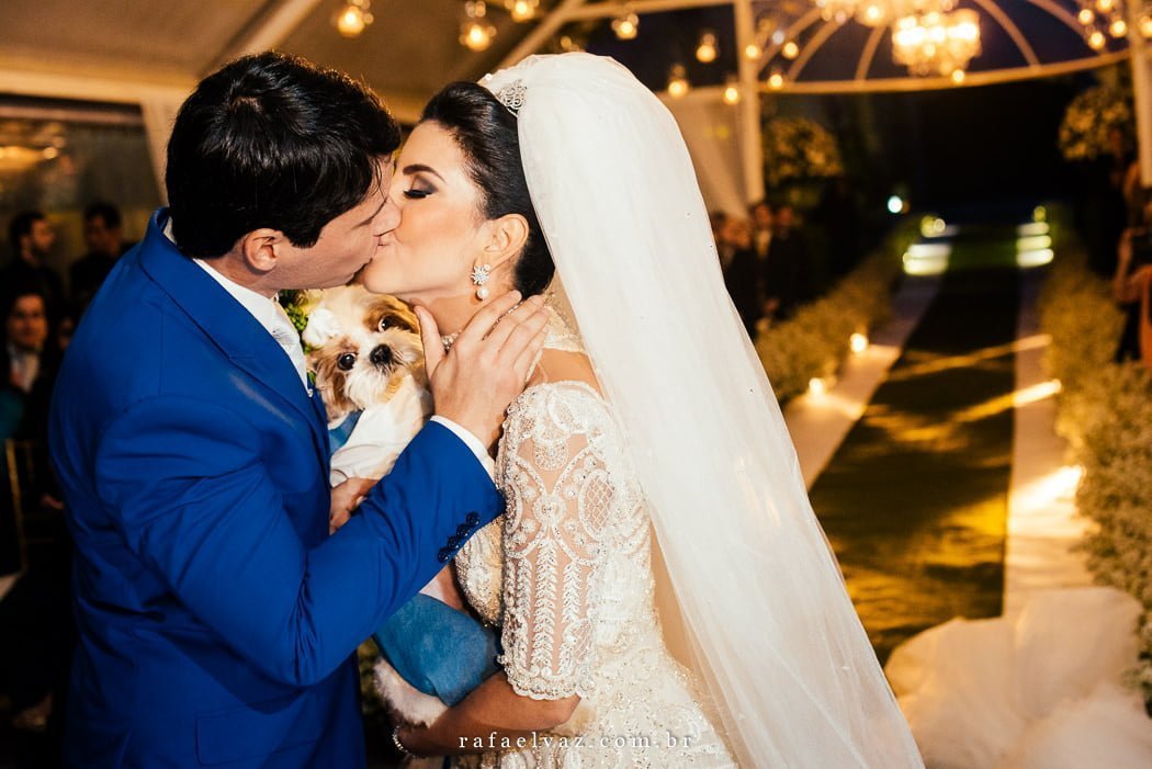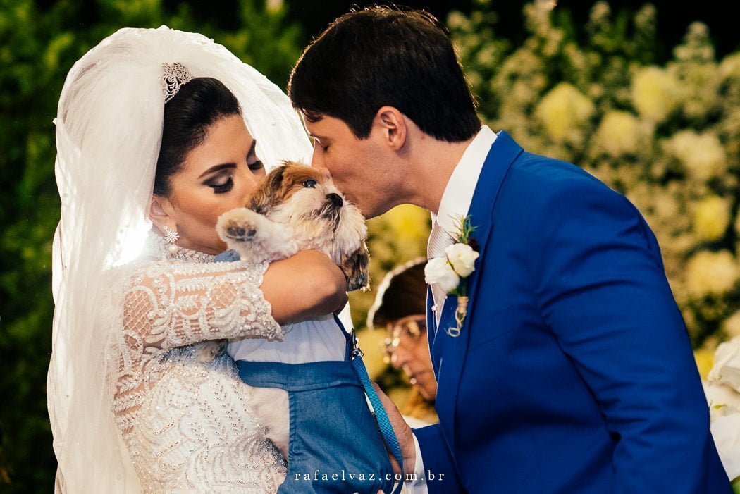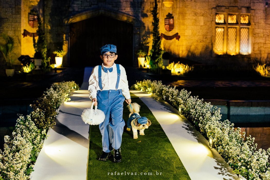 Não posso deixar de falar da presença ilustre do filhotinho de 4 patas deles, vestido com o traje igual ao dos outros pajenzinhos. Todos encantadores.